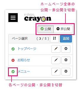 ホームページの公開・非公開の切り替えが簡単に行えます。