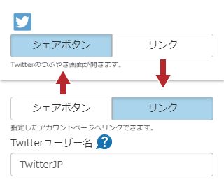 他のSNSボタンと同様に「シェアボタン」と「リンクボタン」を選択できます。