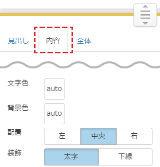 「内容」の1行目に、ボタンに表示する文字を入力します。